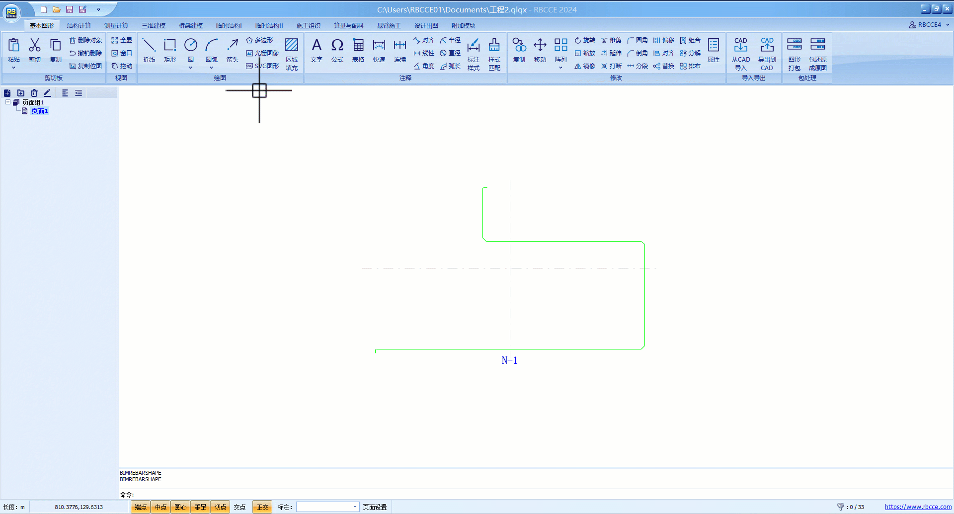 4、形状模板绘制完成,或完成参数化后,可利用左下角钢筋长度于设计核对来查看所得到形状模板是否正确。