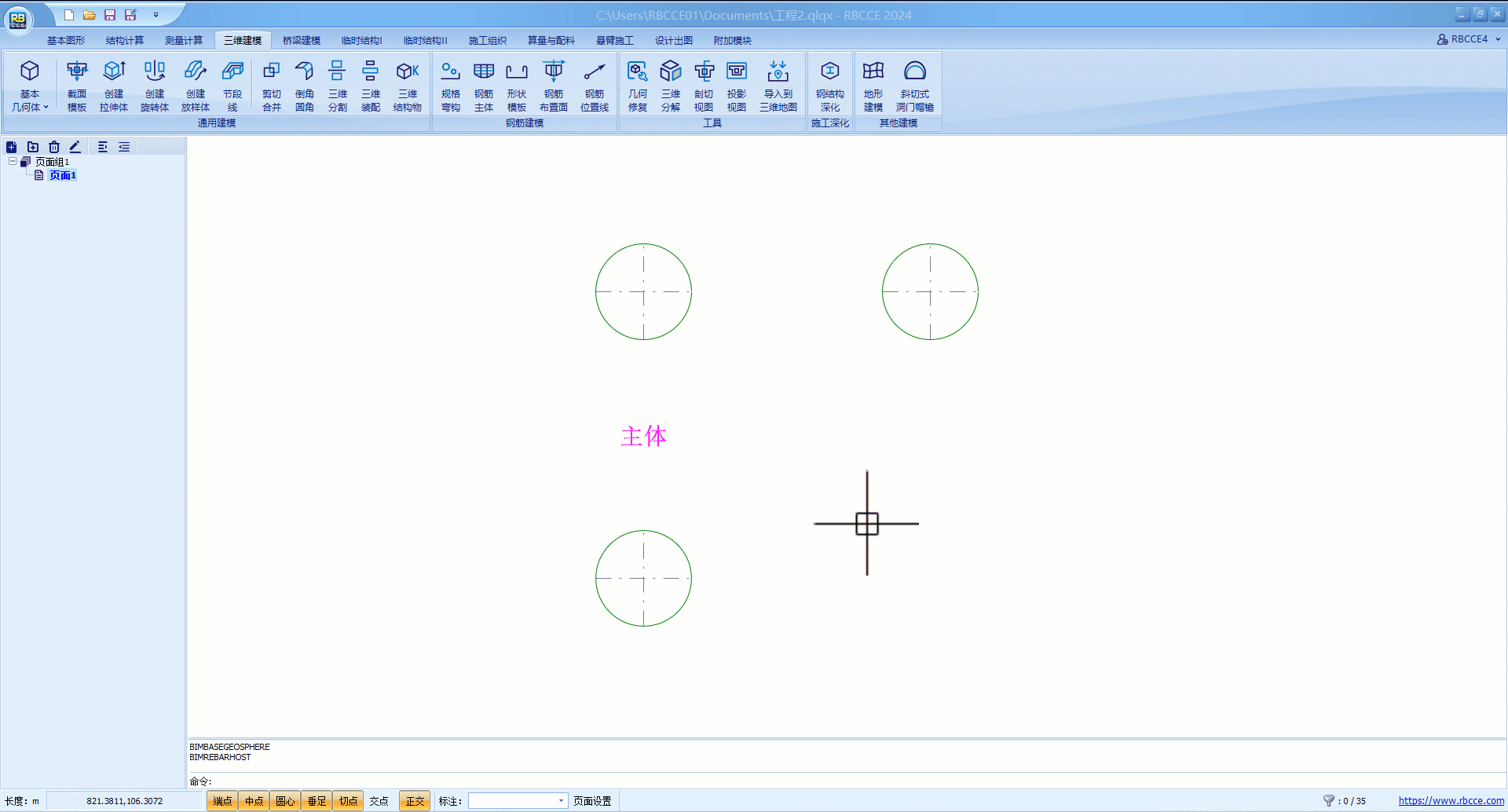 在绘制三维钢筋前,需要创建钢筋所依附的三维模型主体,该三维模型可通过通用建模创建得到,也可通过桥梁建模功能中参数化得到。