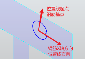 垂直面:指X轴与钢筋布置面垂直,体现为线面垂直,此时线与面存在一个交点,该交点默认为位置线的起点,固定为钢筋基点。