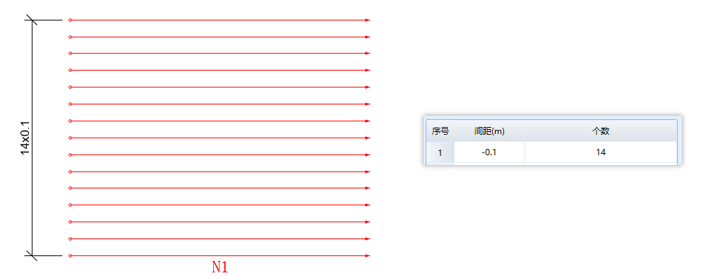 - 钢筋数量表:统计位于该布置面上的钢筋数量;