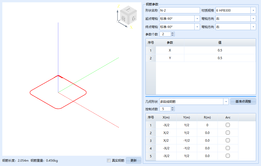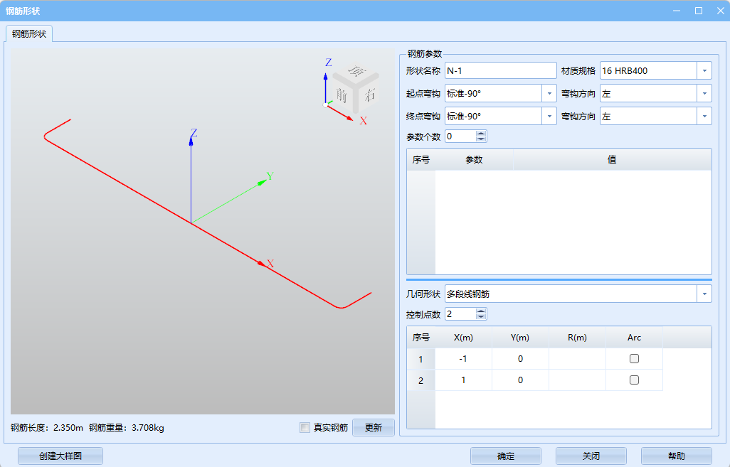 - 形状名称:该形状模板的名称,仅用于区分形状模板,区别于最终的钢筋大样编号;
