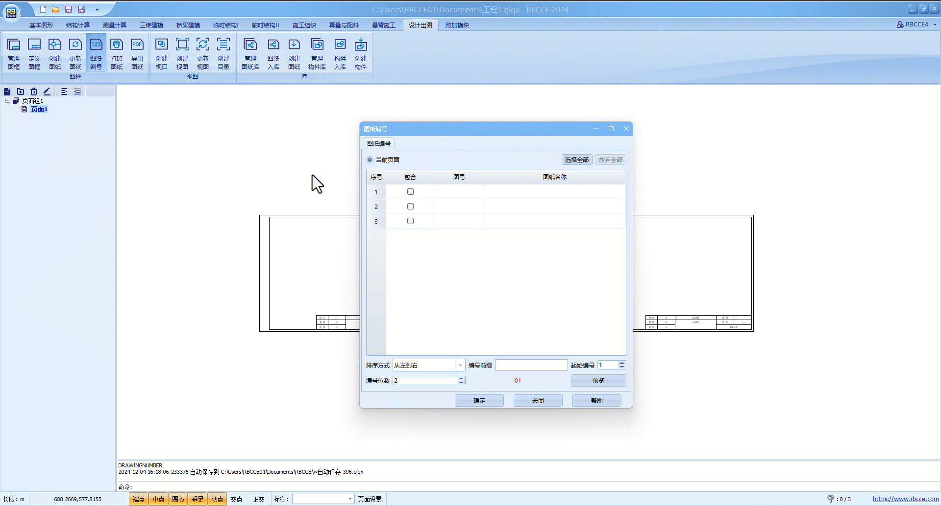 用于为创建完成的图纸按顺序给定编号。