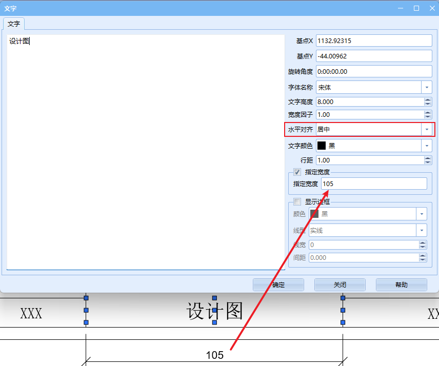 - 文字应居中,宽度应为两端区域宽度,这样修改参数时会始终保持居中状态。