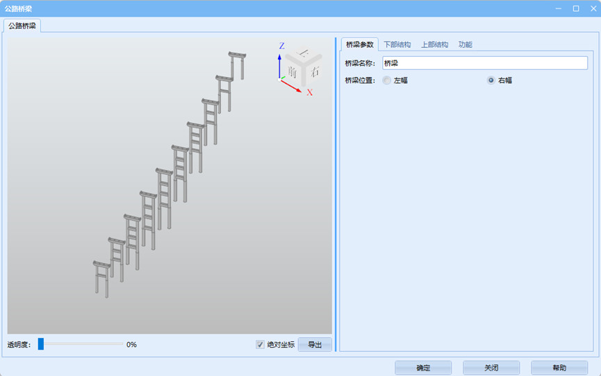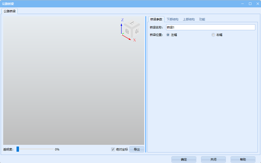 修改桥梁名称与桥梁位置,单幅任意指定,后续通过距中线距离调整,点击下部结构,进入下部结构一栏。