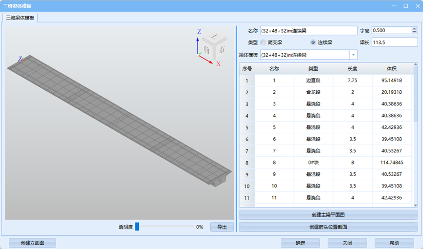 参数化建模适用于一般直腹板简支梁或连续梁的创建与修正,对于部分梁体来说,需要采用通用建模进行绘制或修正,如斜腹板梁需要创建三维节段线后进行修正,道岔梁需要自行建模。