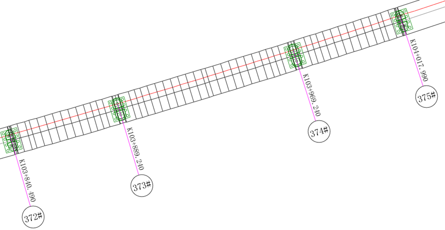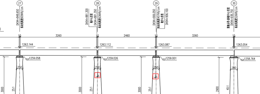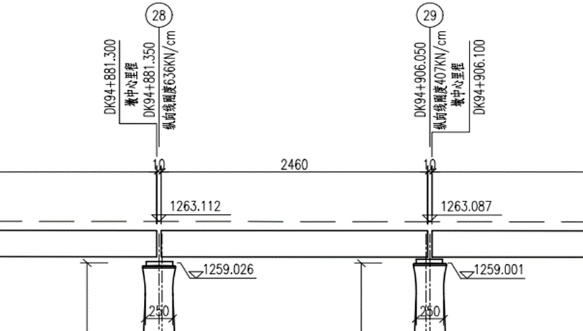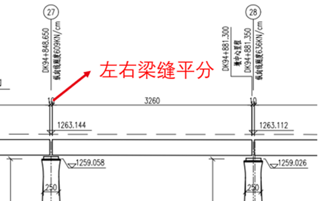 梁缝分界里程:桥墩的里程标记线,可在全桥布置图中查看。