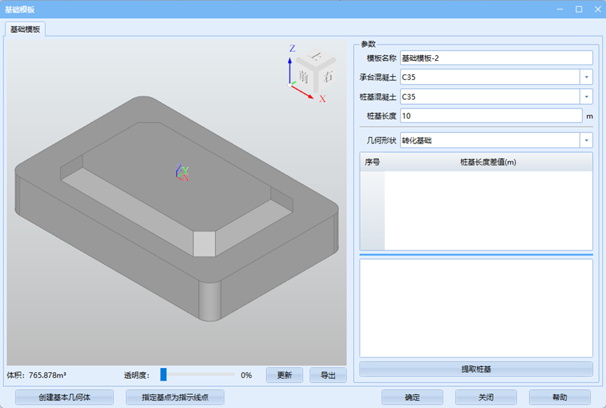 - 桩基长度:对于变长基础来说,输入的参数为创建模板时指定的基准长度。