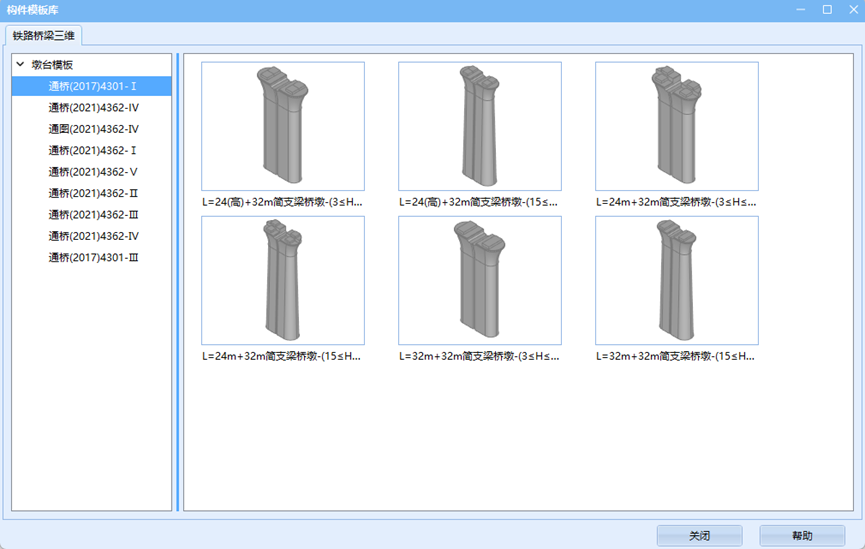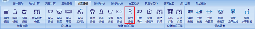 构件模板库中储存了部分通图墩台模板,需要时可直接提取进行使用。
