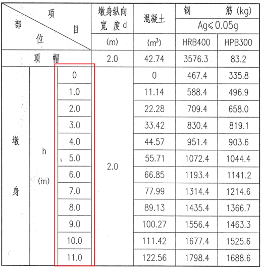 墩高范围。桥墩墩身高度处于不同范围时,尺寸及形状会有所不同,如墩身高度在较低范围时,一般为直坡墩,当处于较高范围时,则为变成斜坡墩。可在全通图/专图中找到。