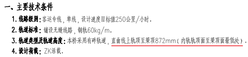 梁顶距轨顶高差:用于高程传递计算,可在设计说明中找到,需要注意距离轨顶为最低处/最高处/梁中心。