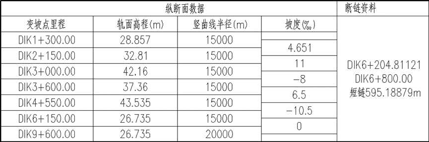 纵断面、断链表