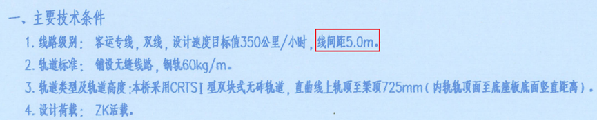线间距:当铁路桥梁为双线时,左线右线间距为线间距,可在设计说明中找到。