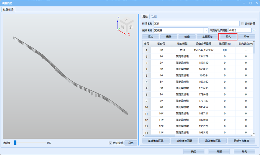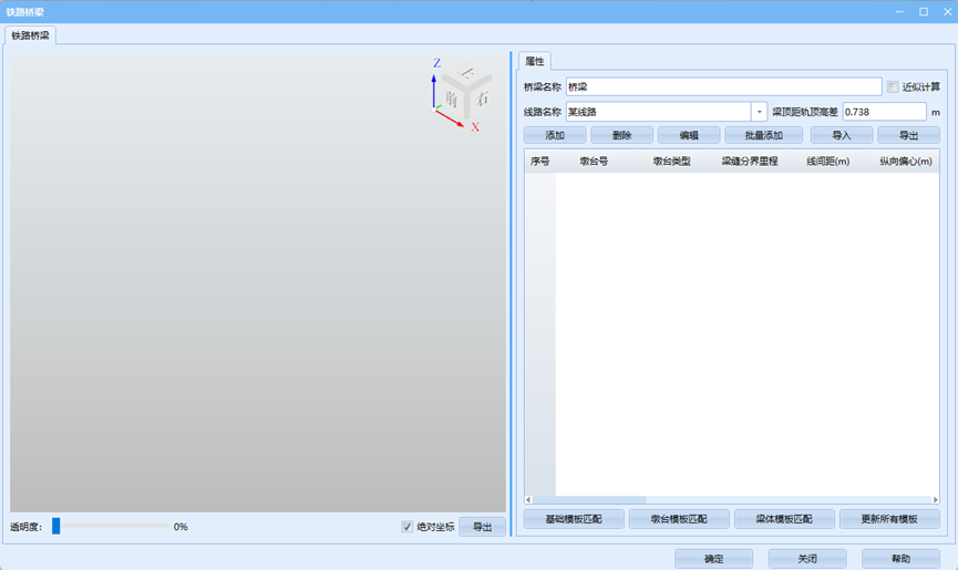 - 梁体模板匹配:为梁体模板指定适用的墩台号。