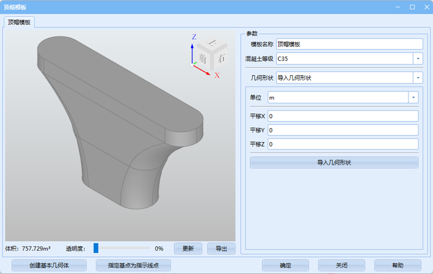 - 对于桥台等墩身、顶帽模板分界不明显的结构来说,自行指定、利用通用建模创建并转化即可。