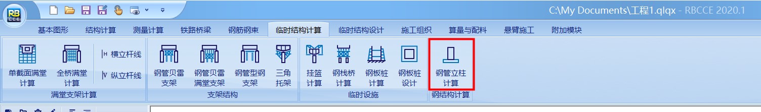 点击 RBCCE 软件“临时结构计算”页面中的“钢管立柱计算”按钮,如下图所示: