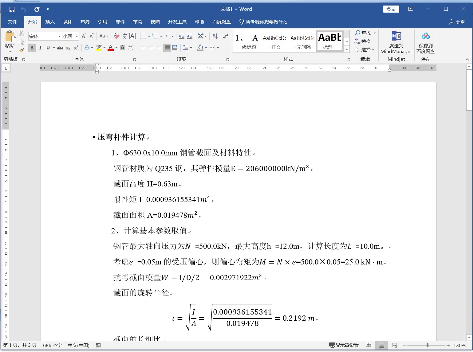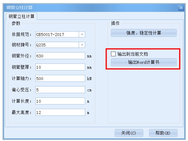 点击窗体上的“输出 Word 计算书”按钮,软件将自动将计算结果输出到 Word 中。