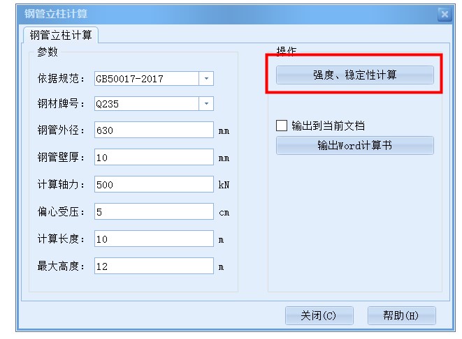 如果输入 0,则按轴心受压计算;否则,按压弯构件计算,弯矩 W=N×e。