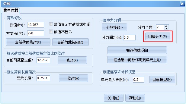 激活翼缘区集中力,创建集中力的分力(根据侧模纵梁的个数),例如翼缘区有两个分力: