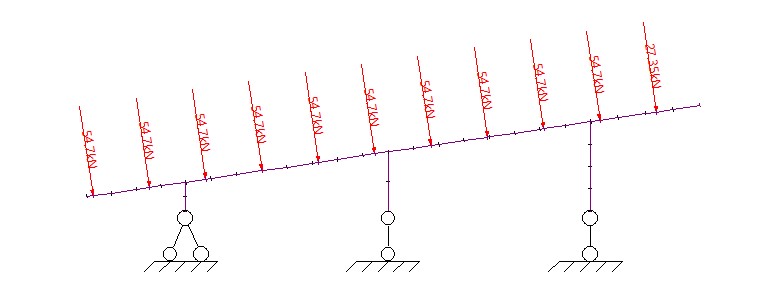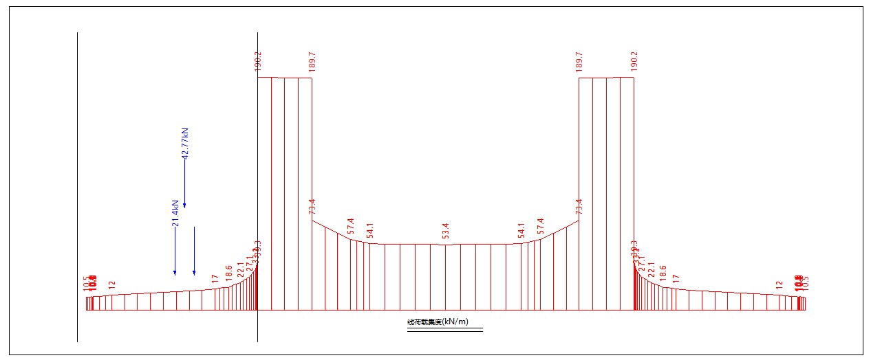 创建承重梁模型,根据小楞间距与其最大支座反力加载集中力,例: