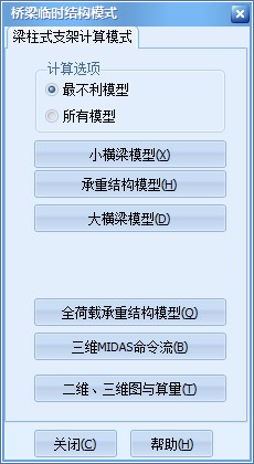 - 若需创建该方案某一结构所有有限元模型可通过调整“计算选项——所有模型”,即可在模式矩形框上部展示该结构所有有限元计算模型