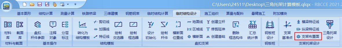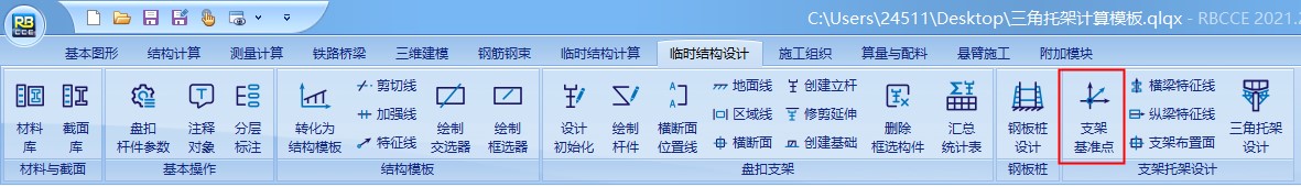 点击 RBCCE 软件的“临时结构设计”页面中“支架托架设计”面板上的“支架基准点”按钮,如图: