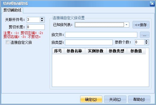 激活生成的剪切线,弹出“结构模板辅助线”窗口,如图: