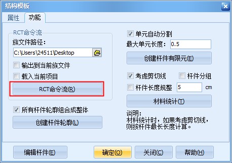 利用折线等绘图工具绘制所需结构的形状,将绘制的图形进行组合,点击 RBCCE 软件的“临时结构设计”页面中“结构模板”面板上的“转化为结构模板”按钮,如图: